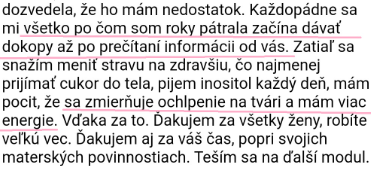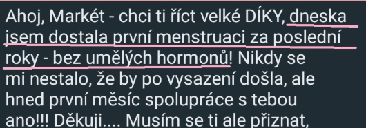 "Všechno po čem jsem roky pátrala se začíná dávat do kupy až po přečtení informací od vás. Zmírňují se chloupky na tváři a mám víc energie."