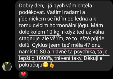 "Mám dole 10kg, cyklus se zkrátil z 80 dnů na 47, psychika je lepší o 1000%!"