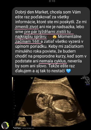 "Na ultrazvuku nejsou vidět žádné cysty a ovulace probíhá. Doktor byl nadšený a já taky."